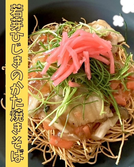 パリパリのかた焼きそばとシャキシャキの若芽ひじき…色々な触感が楽しめる一品です🥢☆